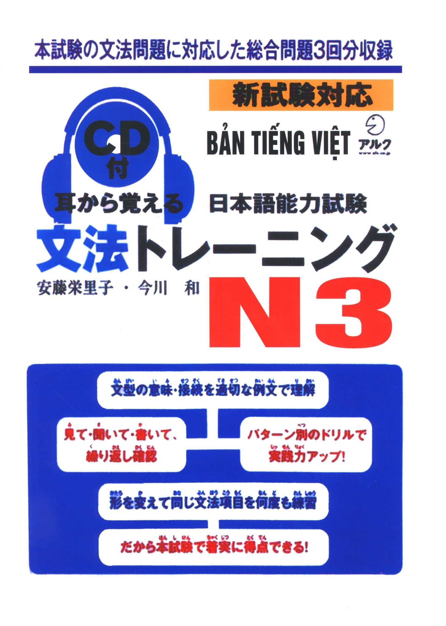 – Sách luyện thi N3 Mimikara oboeru (Toreningu) ngữ pháp tổng hợp toàn bộ các điểm ngữ pháp sẽ xuất hiện trong đề thi Năng lực Nhật ngữ N3 và được phân chia theo 2 yếu tố khác nhau: cấu trúc và ý nghĩa. Ví dụ: Sách luyện thi N3 Mimikara oboeru ngữ pháp phân chia các điểm ngữ pháp dựa vào các điểm tương đồng về cấu trúc như tổng hợp tất cả các điểm ngữ pháp ~こと、~もの、~ところ… hoặc Sách luyện thi N3 Mimikara oboeru ngữ pháp phân chia ngữ pháp dựa vào ý nghĩa như tổng hợp các điểm ngữ pháp có ý nghĩa là phán đoán ~よう、~みたい、~らしい、hoặc theo quan hệ ~に関して、~に比べ、~に対して….Đặc biệt, với mỗi điểm ngữ pháp, sách phân tích chi tiết, rõ ràng, cụ thể với hàng loạt các ví dụ điển hình và các điểm cần chú ý về ngữ pháp đó.