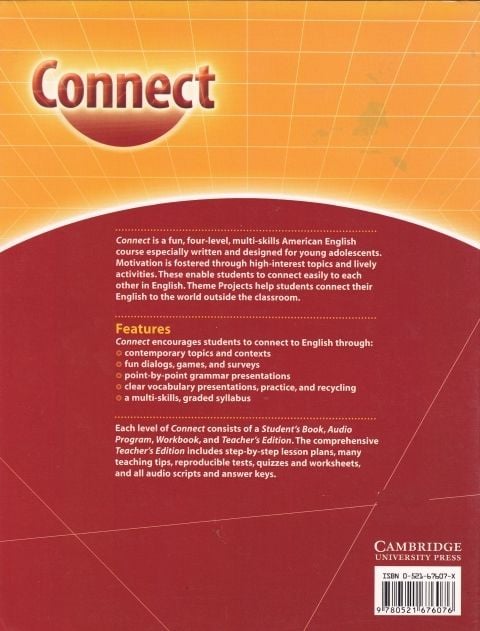 Connect, First Edition, is a fun, 4-level, multi-skills American English course especially written and designed for young adolescents. Connect Student's Book 1 is a beginning-level text for students aged 11–15 who are learning English for the first time. It develops speaking, listening, reading, and writing skills. Tasks provide opportunities for students to share their experiences. High-interest topics motivate them to learn. Student's Book 1 contains eight units divided into two-page lessons. Also included are eight Learning Logs or self-assessment tests and eight Theme Projects.