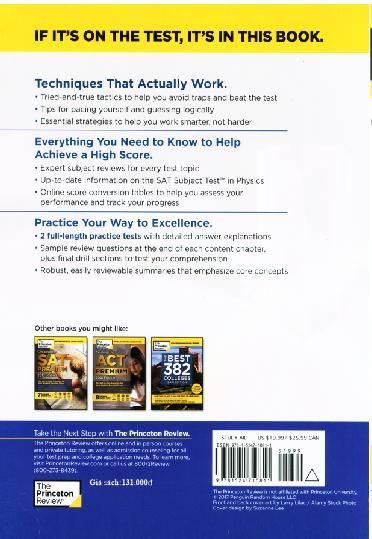 EVERYTHING YOU NEED TO HELP SCORE A PERFECT 800. Equip yourself to ace the SAT Subject Test in Physics with The Princeton Review's comprehensive study guide—including 2 full-length practice tests, thorough reviews of key physics topics, and targeted strategies for every question type.