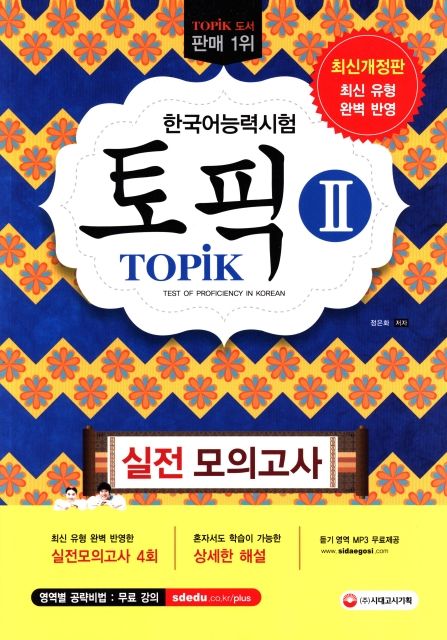 Quyển này được biên soạn theo mẫu đề ôn thi mới TOPIK II . Gồm 4 bộ đề thi như các bài thi thât. Phần cuối trang là phần đáp án và giải thích rõ ràng cho từng phần, từng câu. Giúp bạn có thể hoàn toàn tự học.