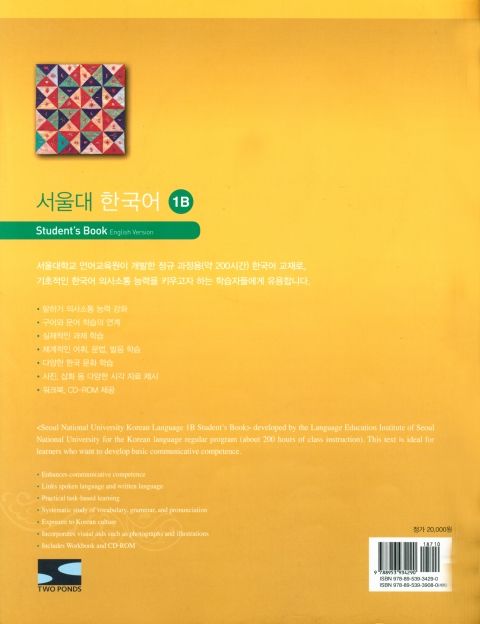 Giáo trình Tiếng Hàn Seoul 1B biên soạn dành học viên học tiếng Hàn Quốc - Cung cấp các kỹ năng giao tiếp ban đầu như” giới thiệu bản thân, gia đình, sở thích , mua sắm- hỏi đường... đồng thời giúp học viên hoàn thành một câu văn đơn giản dựa vào sự hiểu biết về khoảng 800 từ vựng và ngữ pháp cơ bản.