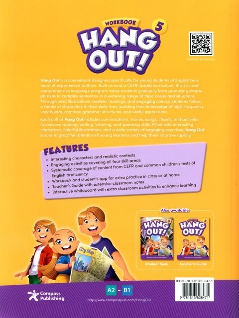 Hang Out is a coursebook designed specifically for young students of English by a team of experiences authors. Built around a CEFR-based curriculum, this six-level comprehensive language program takes students gradually from producing simple phrases to complex sentences in a widening range of topic areas and situations. Through vivid illustrations, realistic readings, and engaging comics, students follow a family of characters in their daily lives, building their knowledge of high-frequency vocabulary, common grammar structures, useful expressions and cross-curricular content .
