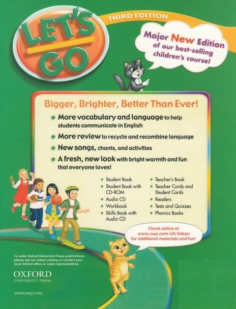 Bigger, brighter and better than ever, Let's Go, 3rd Edition, is a series for children who are just beginning their study of English. It combines a carefully controlled, grammar-based syllabus with practical language. Functional dialogues, interactive games, and pair work activities foster a lively and motivating classroom environment. The new CD-ROM features interactive learning games that help reinforce the vocabulary and language from each unit..