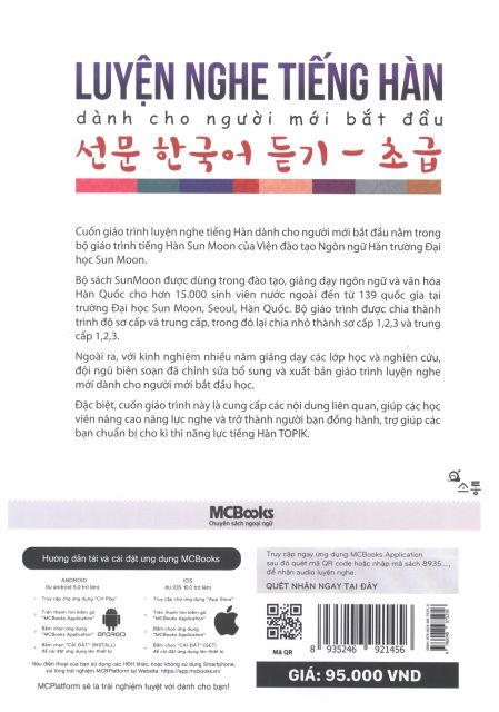 Cuốn sách Luyện nghe tiếng Hàn cho người mới bắt được thiết kế những kiến thức cơ bản -những mẫu câu giao tiếp thực dụng và cách biểu hiện câu để giúp người học luyện kỹ năng nghe nói, tăng hiệu quả giao tiếp. Cuốn sách phù hợp với học sinh, sinh viên , người đi làm, giáo viên sử dụng ngôn ngữ tiếng Hàn.