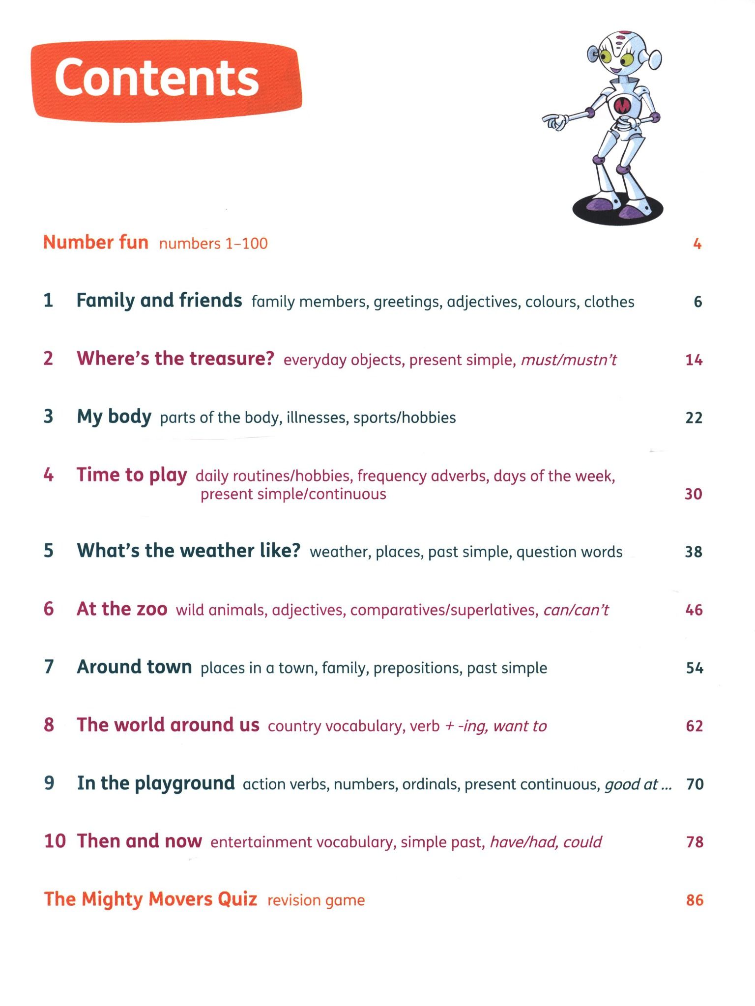 Mighty Movers is the second in a three-level series for young learners of English. It is based on the syllabus of the Cambridge Young Learners Movers Test and is designed to ensure successful learning in children preparing for that Test. Mighty Movers is an activity-based course and can also be used with any young learner in the 7-9 age range