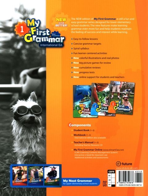 The NEW edition of My First Grammar is still a fun and easy grammar series designed for lower elementary school students. In the series, students are presented with easy-to-understand charts that highlight each grammar target. Lots of colorful images and photos help illustrate each target and fun activities continually keep students engaged. The new features make learning grammar even more fun and help students maintain the feeling of success and interest while learning.