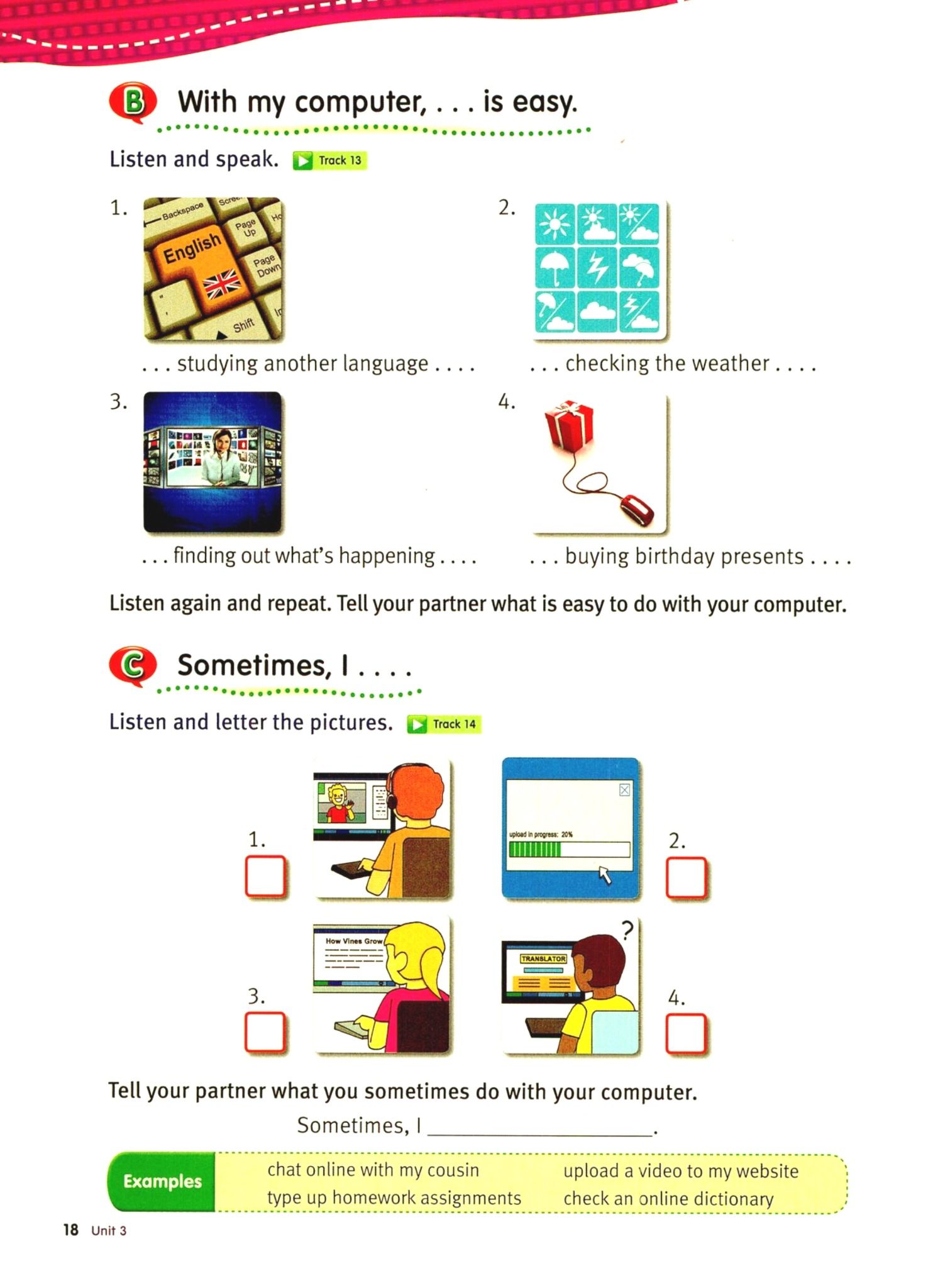 Các hoạt động được trình bày trong mỗi đơn vị của cuốn sách giúp học sinh mở rộng các kỹ năng nói cơ bản thông qua thực hành có hướng dẫn. Các hoạt động nghe và làm việc theo cặp bổ sung tạo cơ hội cho học sinh nghe các mẫu nói và thực hành các kỹ năng giao tiếp bằng miệng của chính mình.