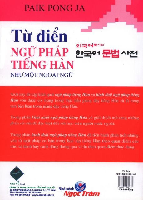 Từ điển ngữ pháp tiếng Hàn giới thiệu nhiều cấu trúc ngữ pháp tiếng Hàn phức tạp đồng thời đưa ra các tình huống thường xuyên sử dụng chúng . Đây là cuốn sách khơi dậy hứng thú và sự yêu thích tiếng Hàn.